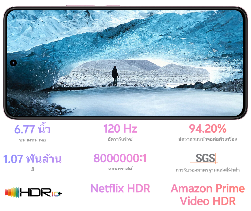 50 + 8MP (Ultrawide) ล้านพิกเซล (Dual Camera) |