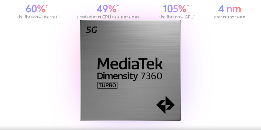 Mediatek Dimensity 7360 Turbo CPU : Octa Core (2.5 GHz) |